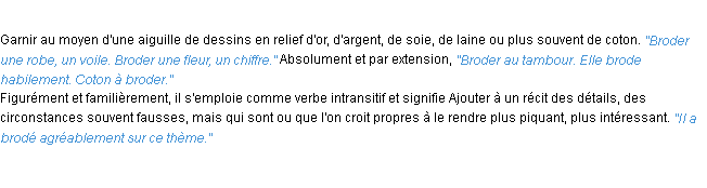Signification éditée en 1986 pour le terme « broder » par l’Académie Française.