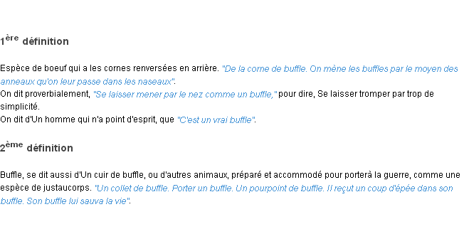 Définition académique pour le terme « buffle » (parue en 1986).