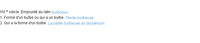 Définition de l’Académie Française (édition de 1986) pour le mot « bulbeux ».