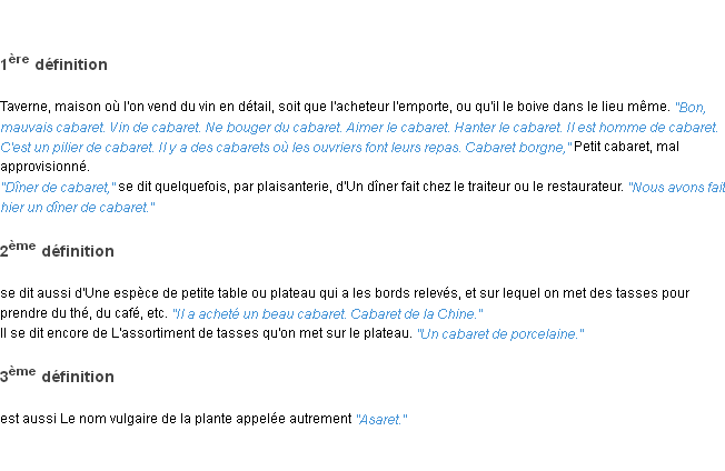 Définition du mot « cabaret » par l’Académie Française (édition de 1932).