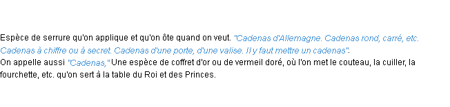 Ancienne définition académique pour le terme « cadenas » (parue en 1835).
