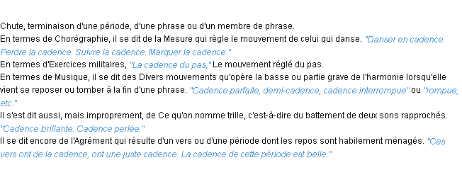 Définition du mot « cadence » par l’Académie Française (édition de 1932).