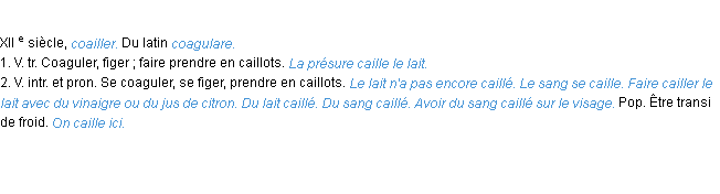 Définition du mot « cailler » par l’Académie Française (édition de 1986).