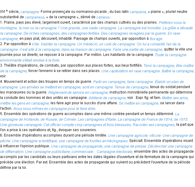 Définition du mot « campagne » par l’Académie Française (édition de 1986).