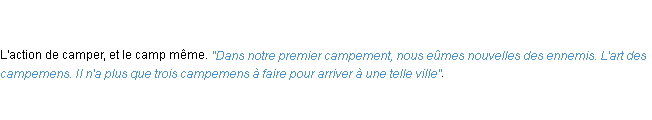 Ancienne signification issue du dico de l’Académie Française, parue en 1798.Merci à Fernand et édith pour la numérisation du mot campement.