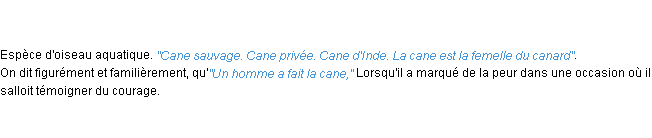 Ancienne signification du terme « cane », parution de 1798, dictionnaire académique Français.Merci à Armelle et Rémi pour la numérisation du mot cane.
