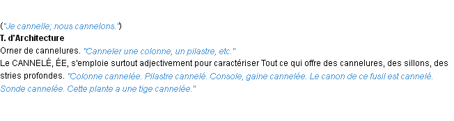 Définition du mot « canneler » par l’Académie Française (édition de 1986).