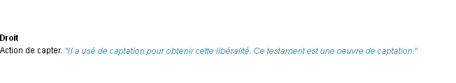 Signification éditée en 1876 pour le terme « captation » par Emile Littré.