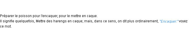 Signification du terme « caquer », parution de 1932, dictionnaire académique Français.