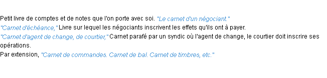 Signification du terme « carnet », parution de 1932, dictionnaire académique Français.