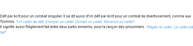 Ancienne signification éditée en 1835 pour le terme « cartel » par l’Académie Française.