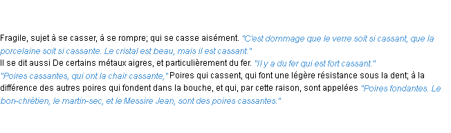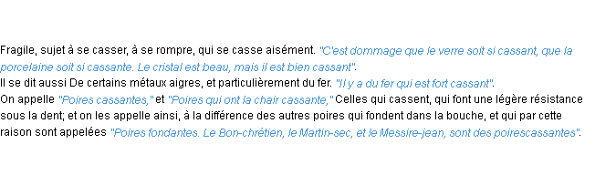 Définition du mot « cassant » par l’Académie Française (édition de 1932).