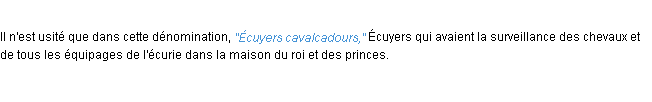 Ancienne définition de « cavalcadour » de source académique (Académie Française, parution de 1798).Merci à Luce et Cécile pour la numérisation du mot cavalcadour.