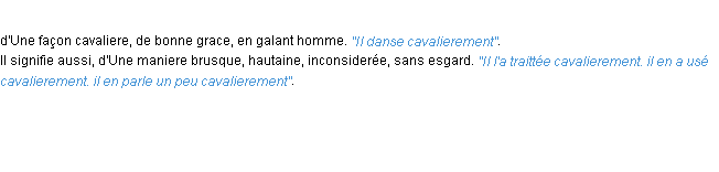 Ancienne définition de l’Académie Française (édition de 1694) pour le mot « cavalierement ».