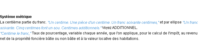 Définition du mot « centime » par l’Académie Française (édition de 1932).