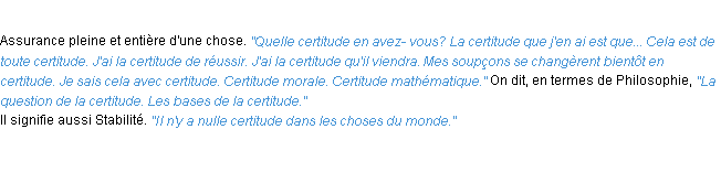 Signification éditée en 1986 pour le terme « certitude » par l’Académie Française.