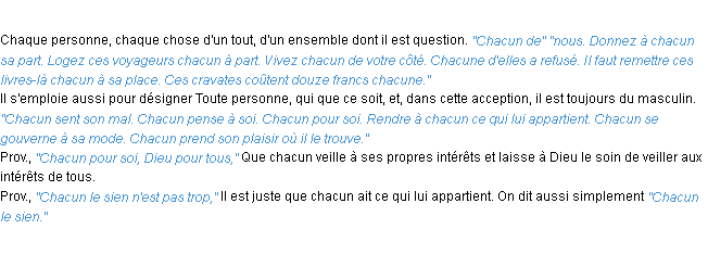 Ancienne signification éditée en 1835 pour le terme « chacun » par l’Académie Française.