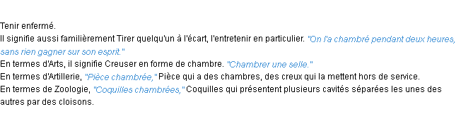 Définition académique pour le terme « chambrer » (parue en 1932).