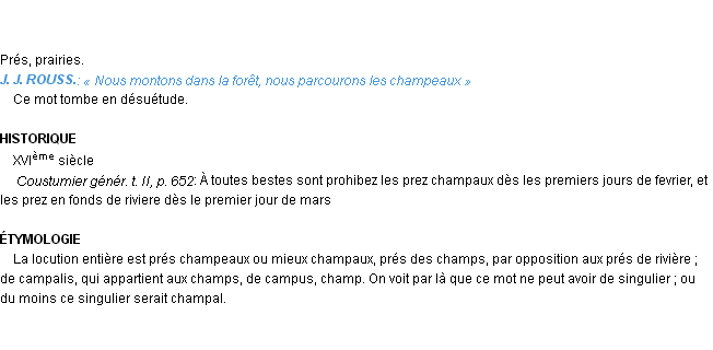 Définition d’Emile Littré (édition de 1876) pour le mot « champeaux ».Merci à Nadine et Yolande pour la numérisation du mot champeaux.