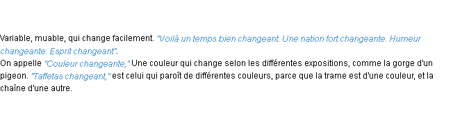 Signification du terme « changeant », parution de 1932, dictionnaire académique Français.