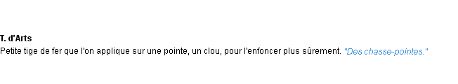Définition développée dans dictionnaire d’Emile Littré (ancienne édition de 1876).Merci à Joséphine et Thierry pour la numérisation du mot chasse-pointe.