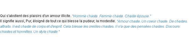 Ancienne définition de « chaste » de source académique (Académie Française, parution de 1798).Merci à Germain et Angelique pour la numérisation du mot chaste.