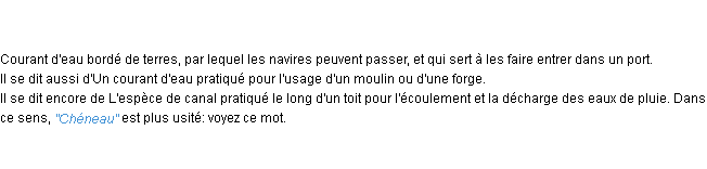 Définition de « chenal » de source académique (Académie Française, parution de 1986).