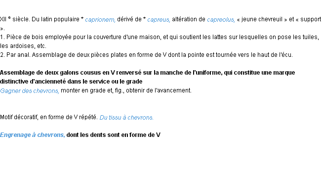 Signification du terme « chevron », parution de 1932, dictionnaire académique Français.