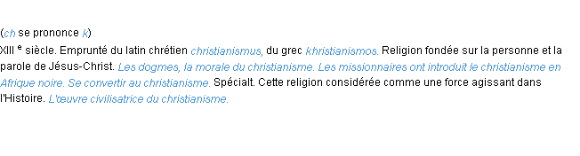 Définition académique pour le terme « christianisme » (parue en 1986).