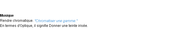 Définition de l’Académie Française (édition de 1932) pour le mot « chromatiser ».Merci à Mathilde et Flavie pour la numérisation du mot chromatiser.