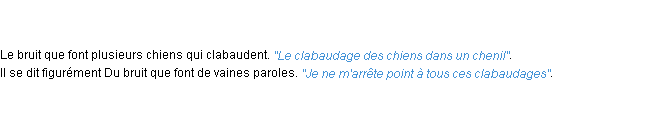 Ancienne signification éditée en 1835 pour le terme « clabaudage » par l’Académie Française.