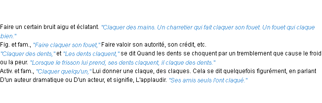 Définition académique pour le terme « claquer » (parue en 1932).