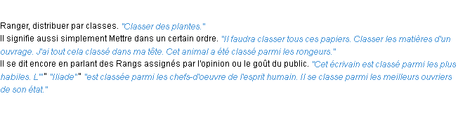 Ancienne définition « classer » du dictionnaire académique Français, parution de l’année 1835.