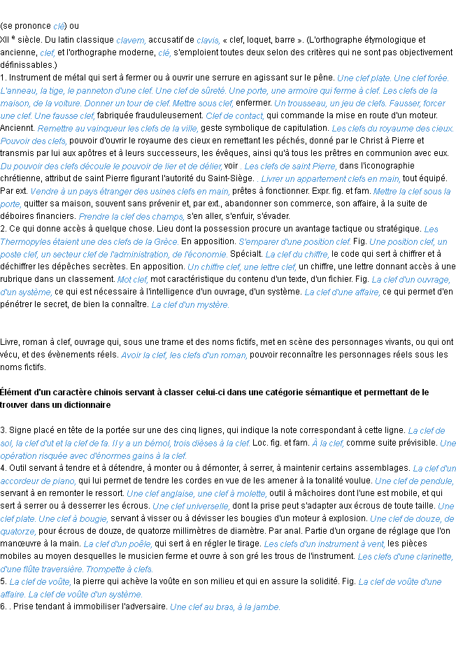 Signification éditée en 1986 pour le terme « clef » par l’Académie Française.