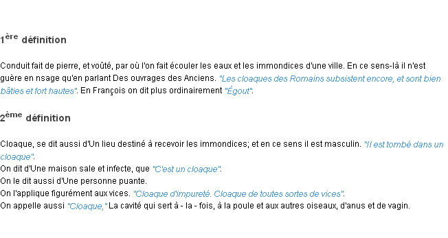 Signification éditée en 1932 pour le terme « cloaque » par l’Académie Française.