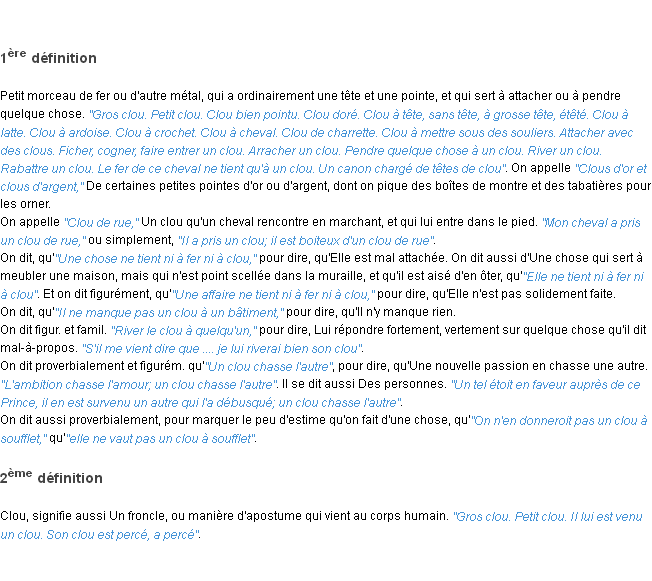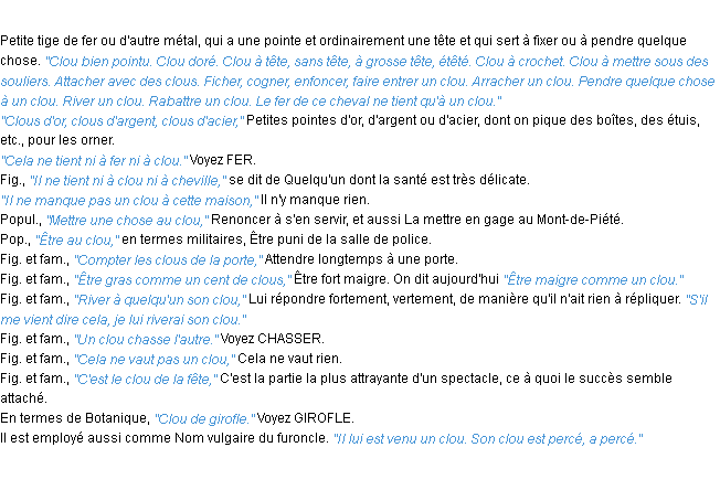 Définition du mot « clou » par l’Académie Française (édition de 1932).