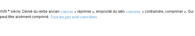 Ancienne signification éditée par l’Académie Française, année 1798.Merci à Charlot et Eloi pour la numérisation du mot coercible.