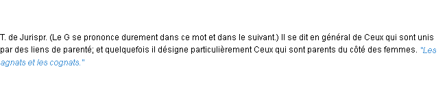 N°1 - Cognat, cité par Numa-Denis FUSTEL DE COULANGES au sein de son œuvre «La Cité antique».N°2 - mot intégré par Numa-Denis FUSTEL DE COULANGES au sein de son ouvrage «La Cité antique».