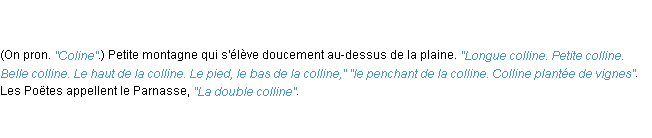Définition de « colline » de source académique (Académie Française, parution de 1932).