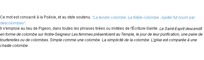 Définition « colombe » du dictionnaire académique Français, parution de l’année 1932.