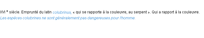 Signification du terme « colubrin », parution de 1876 (dictionnaire le Littré).Merci à Aurélie et Benjamine pour la numérisation du mot colubrin.