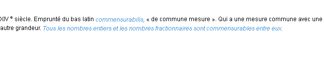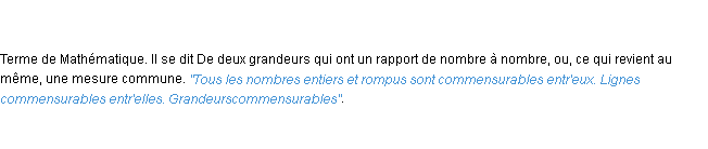 Définition du mot « commensurable » par l’Académie Française (édition de 1932).