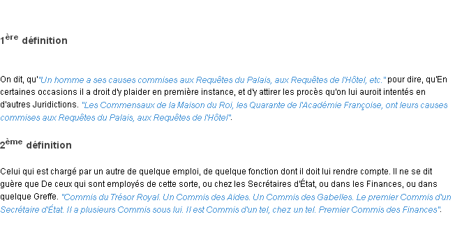 Définition du mot « commis » par l’équipe de la-definition.fr (édition de 2011).Merci à Aristide et Sylvianne pour la numérisation du mot commis.