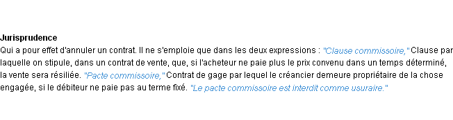 Définition académique pour le terme « commissoire » (parue en 1986).