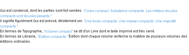 Définition du mot « compact » par l’équipe de la-definition.fr (édition de 2011).