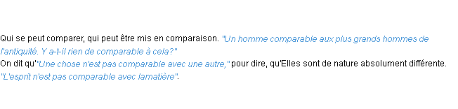 Définition du mot « comparable » par l’Académie Française (édition de 1932).
