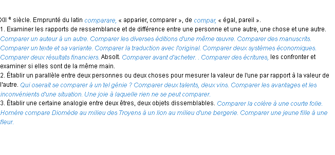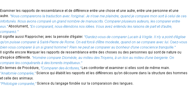Usage du mot: comparer