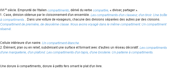 Signification éditée en 1932 pour le terme « compartiment » par l’Académie Française.