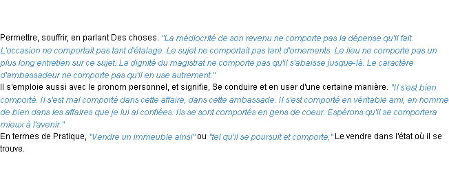 Ancienne définition du mot « comporter » par l’Académie Française (édition de 1798).Merci à Colombain et Gwenaelle pour la numérisation du mot comporter.