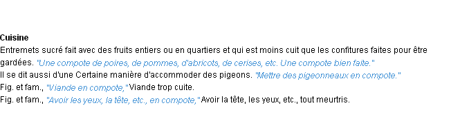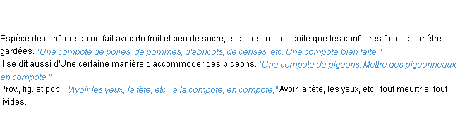 Signification du terme « compote », parution de 1986, dictionnaire académique Français.